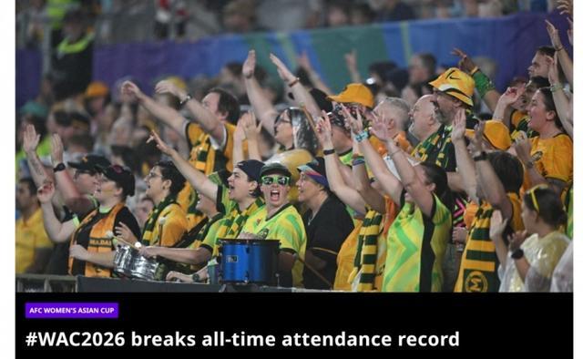 直播吧3月5日讯 据亚足联官网报道,周四在黄金海岸体育场进行的A组澳大利亚对阵伊朗女足赛事吸引22398名观众到场后,本届女足亚洲杯以82371人的总观赛人次创下全新纪录,就此载入史册。