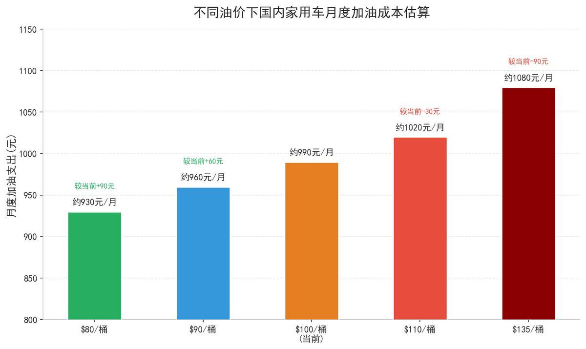 假设油价从目前的100美元附近降到80美元,降幅20美元,对应国内油价下调大约0.4到0.6元一升。一辆家用车每月加油大约150升,每月能省60到90元,一年下来大约700到1000元。但这里有个前提,就是油价真的能稳定在80美元以下,如果只是短暂触及就反弹,实际省下的钱会打不少折扣。