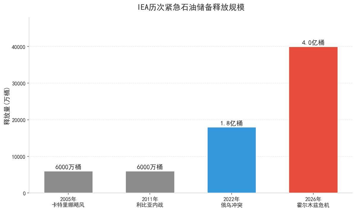 IEA历次紧急石油储备释放规模对比 数据源自IEA、Forbes