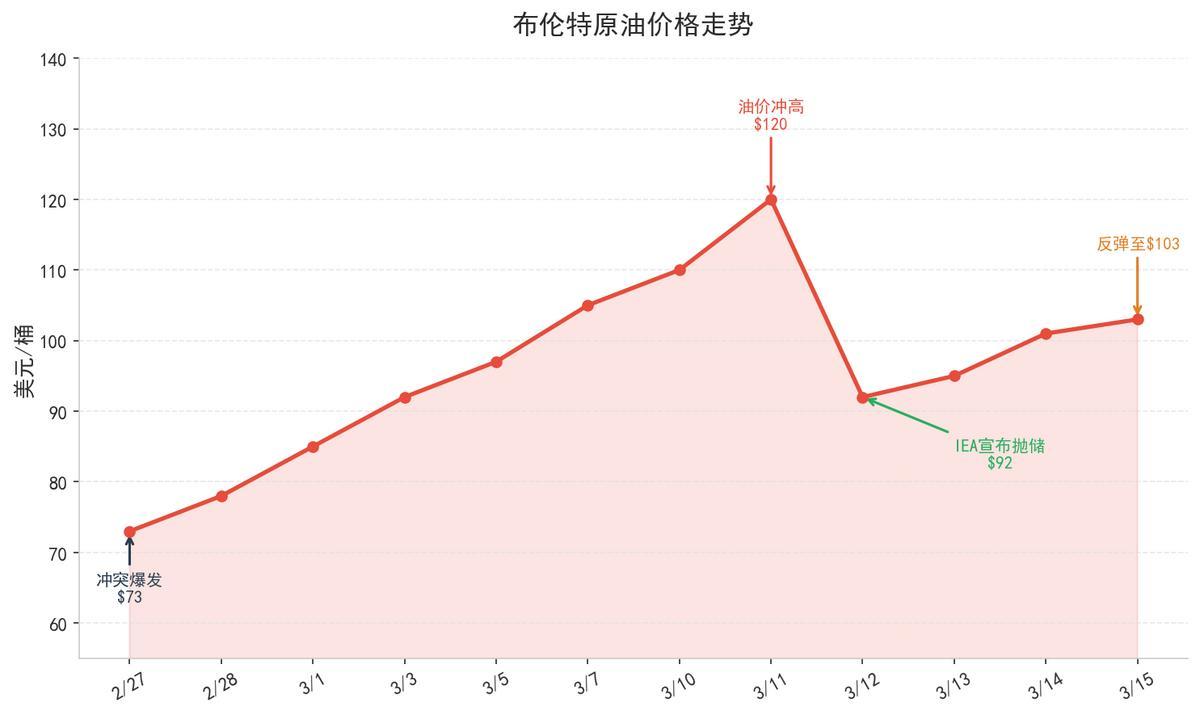 IEA在前些日子宣布动用4亿桶紧急石油储备,这是该组织成立52年来规模最大的一次集体行动。消息公布当天,布伦特原油期货一度从接近120美元回落至90美元出头,市场似乎松了一口气。
