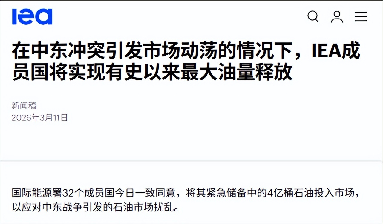 4亿桶听起来惊人,但根据IEA数据显示,2025年-2026年,全球每天1亿桶原油的消费量一除,只够全世界用不到4天。这场史上最大规模的抛储行动,本质上是一针止痛药,而非根本方案。