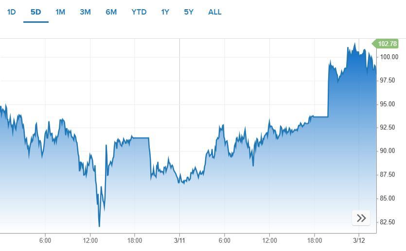 布伦特原油近5日走势 图片源自CNBC