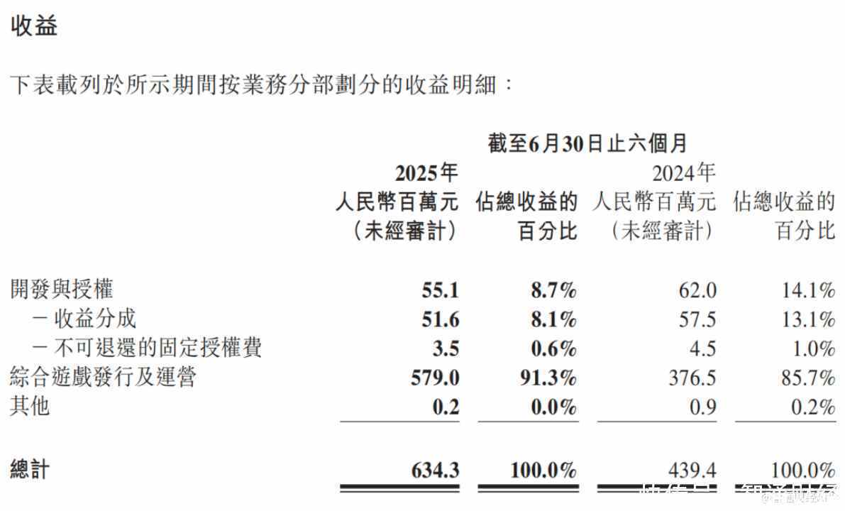 8月22日,祖龙娱乐发布2025年中期业绩公告显示,公司核心经营指标全面向好,高增长态势持续巩固。期内,公司实现营收6.34亿元(人民币,下同),同比增长44.4%。考虑到2024年增速为25.6%、2023年增速为55.5%,营业收入顺利实现“三连增”。同时,公司业务结构进一步优化,综合游戏发行及运营业务营收达到5.79亿元,同比显著增长53.8%。综合游戏发行与运营业务占公司收入比重达到91.3%,同比提升5.6个百分点。